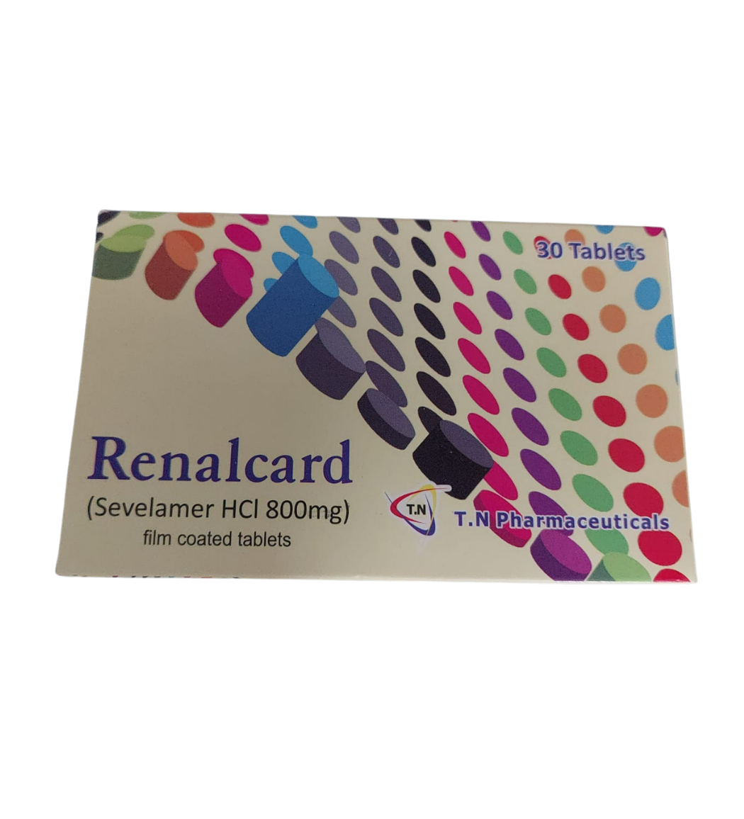 RENALCARD is an innovative sevelamer-based medication designed to manage hyperphosphatemia (elevated phosphate levels) in patients with chronic kidney disease (CKD), particularly those undergoing dialysis. Excess phosphate in the blood can lead to severe complications, including cardiovascular issues and bone disorders. RENALCARD ensures effective phosphate control, helping patients maintain their health and improve their quality of life.